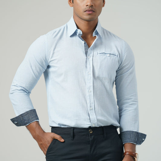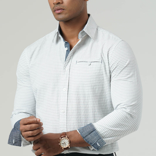 Mens White Blue Striped Shirt
