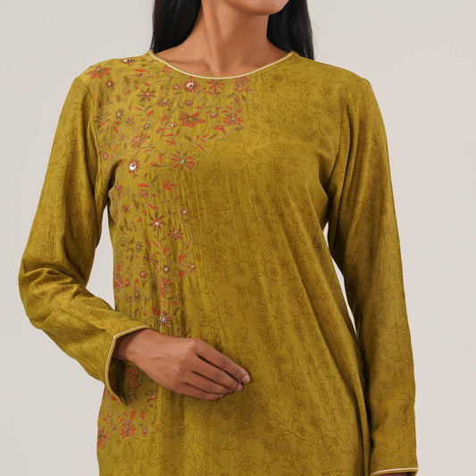 Womens Olive Embroidered Kurti