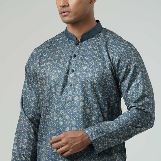 Mens Navy Jacquard Panjabi