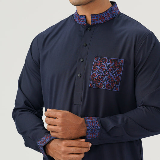 Mens Navy Embroidered Panjabi