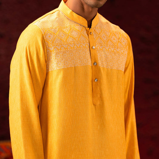 Men Yellow Embroidered Panjabi
