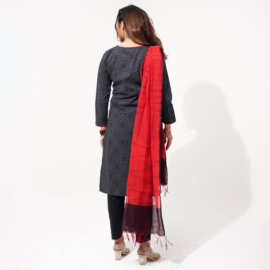 Women Black & Red Ethnic Three Piece Set