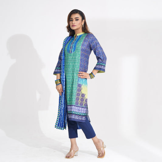 Women Blue Ethnic Three Piece Set