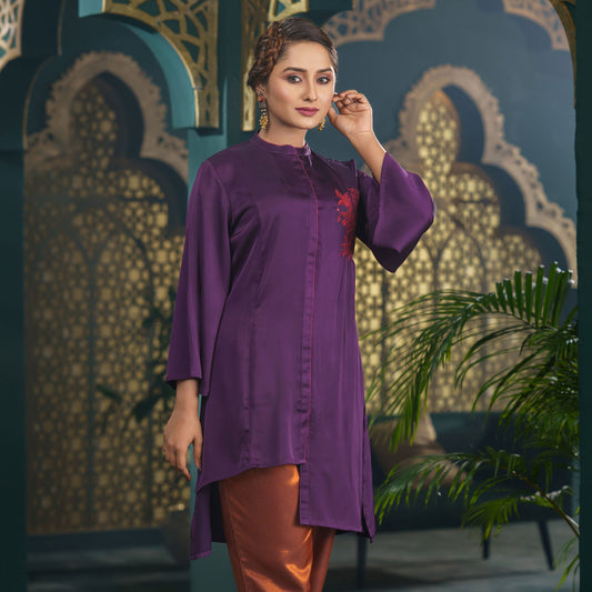 Purple Embroidered Silk Tunic