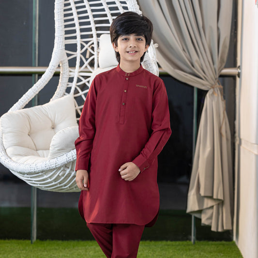 Boy's Maroon Embroidered Kabli