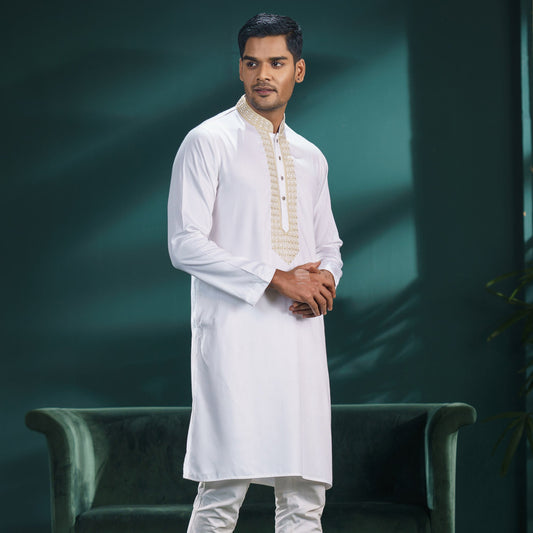 Men’s White Karchupi Panjabi