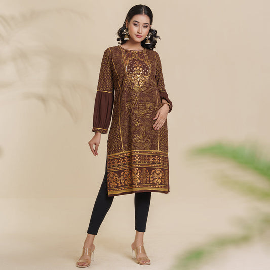 Sold outWomen Brown Screen Print Kurti
