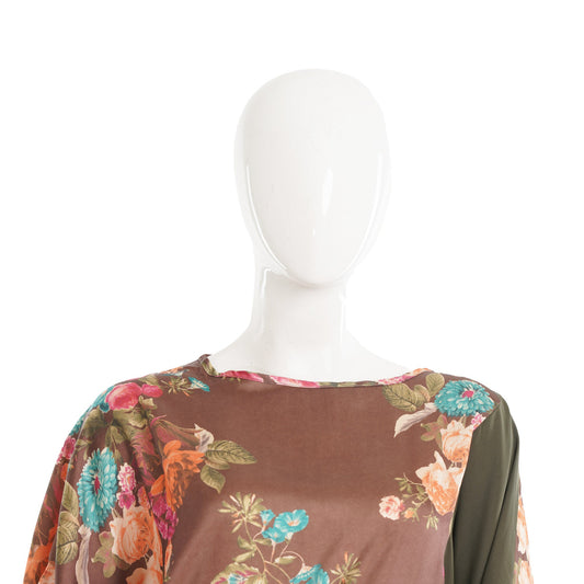 Womens Olive Floral Print Boxy Top
