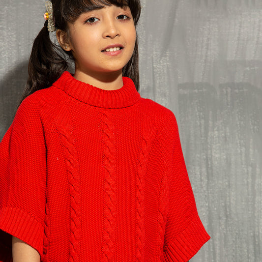 Girls Poncho- Red
