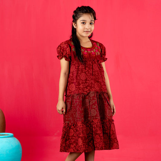 Girls Frock- Burgundy