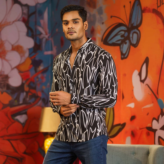 Mens Long Sleeve Shirt -BLACK/BLUE