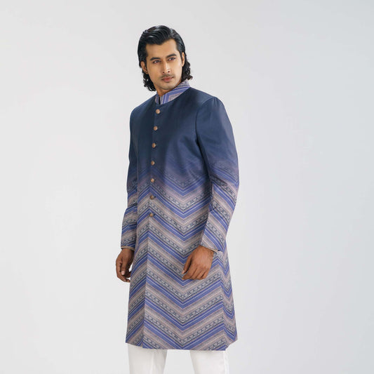 Men's Navy Print Sherwani