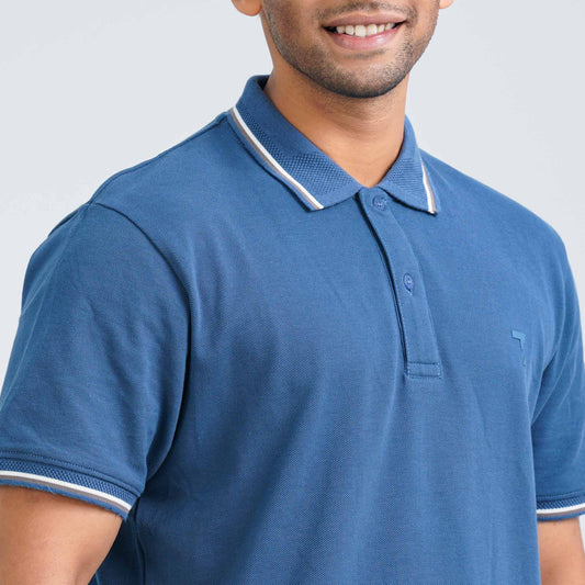 Men's Blue Cotton Polo