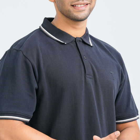 Men's Black Cotton Polo
