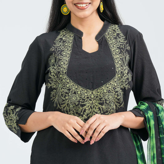 Women’s Black Floral Embroidered Three Piece Set