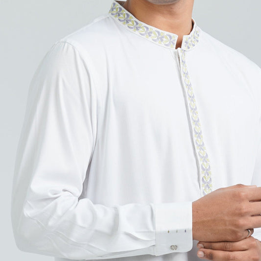 Men’s White Embroidered Panjabi