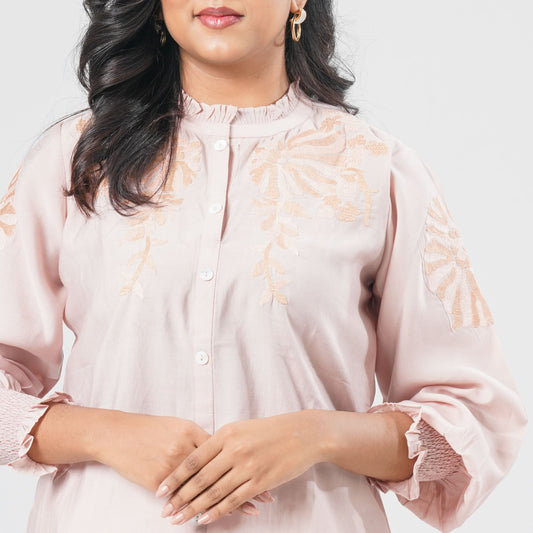 Women’s Peach Embroidered Two Piece Set