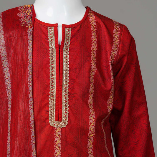 Girls Red Printed Three Piece Set