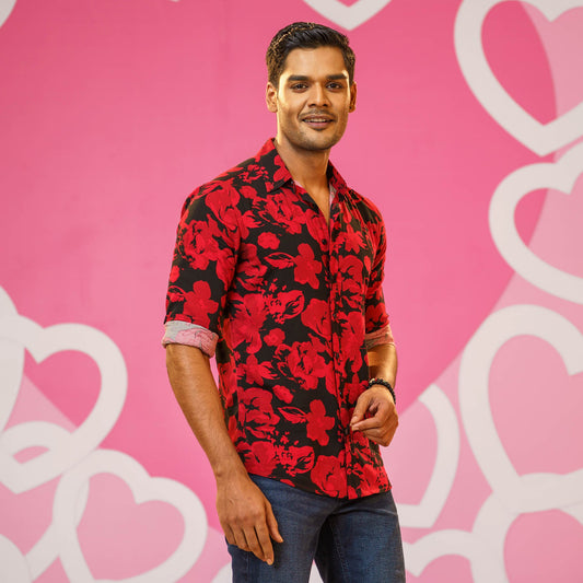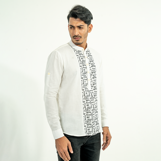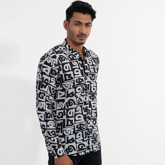 Mens Long Sleeve Shirt -BLACK WHITE AOP
