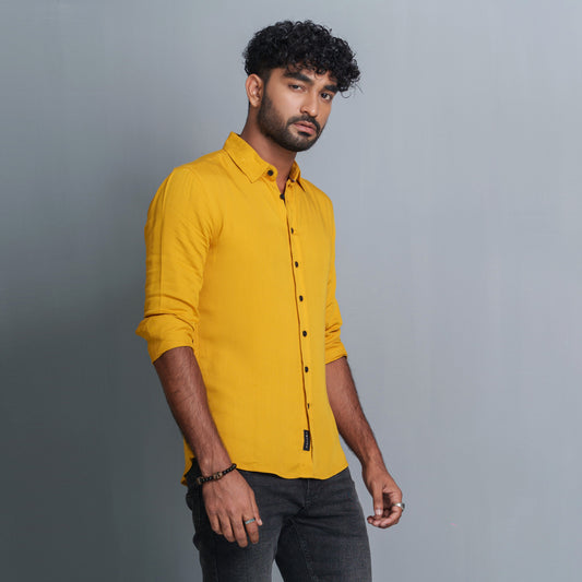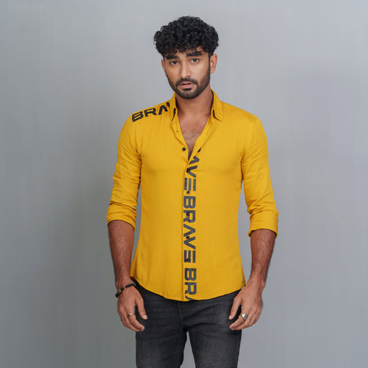 Mens Long Sleeve Shirt-BLUE/YELLOW