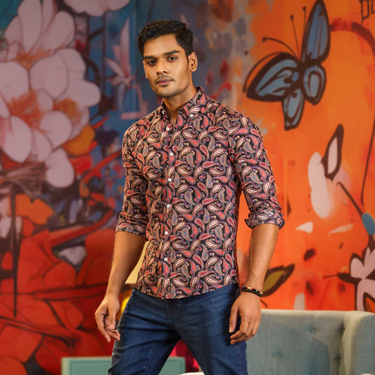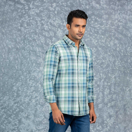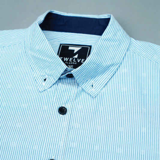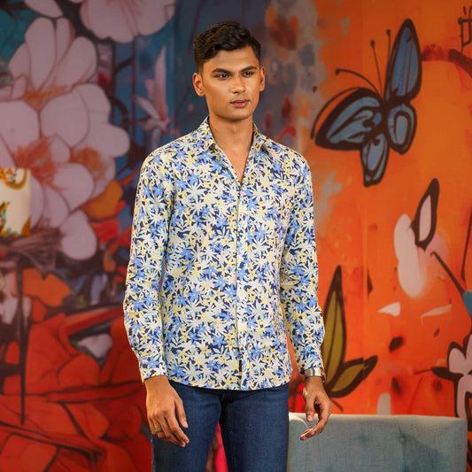 Mens Long Sleeve Shirt Sky-Blue Printed Shirt