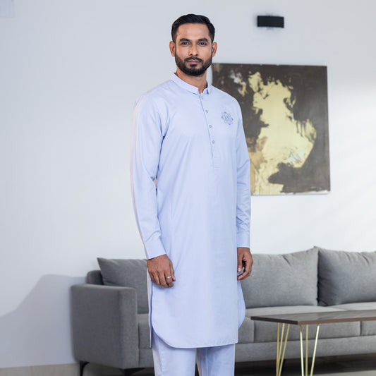 Mens Light-Blue Embroidery Kabli Set