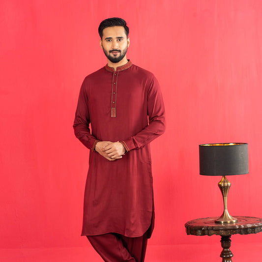 Mens Embroidery Kabli- Maroon
