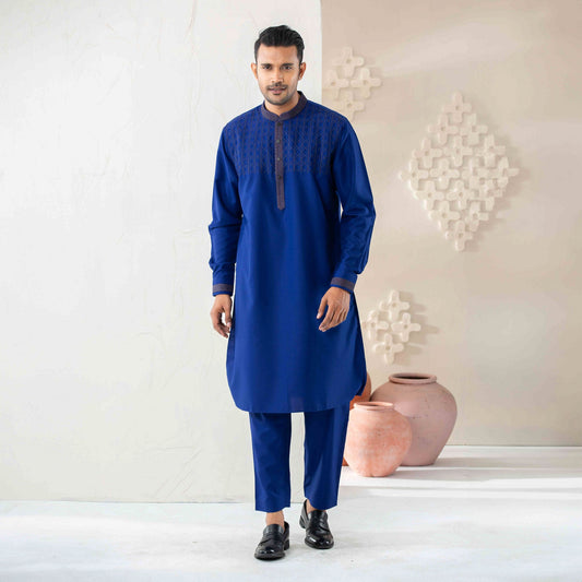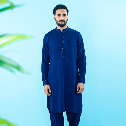 Mens Navy Embroidery Kabli Set