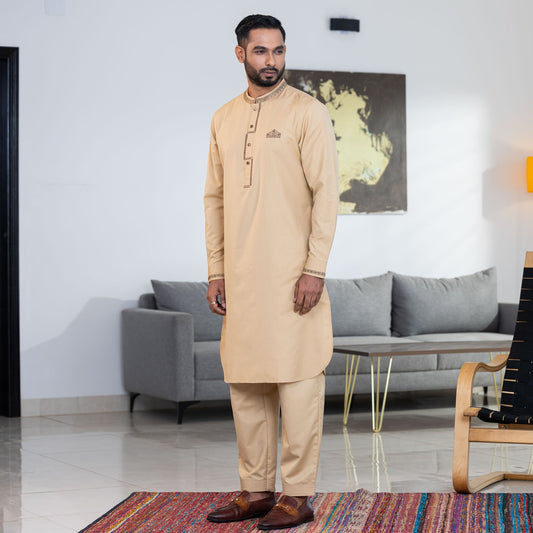Mens Khaki Embroidery Kabli Set