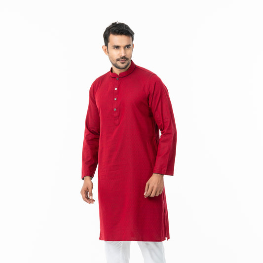 Mens Red Jacquard Panjabi