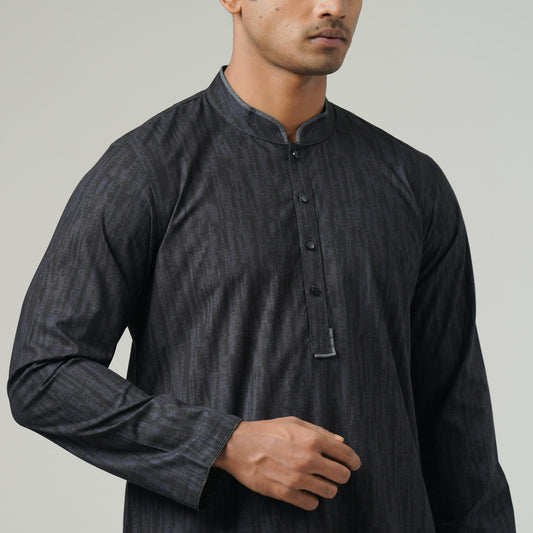 Mens Black Jacquard Panjabi
