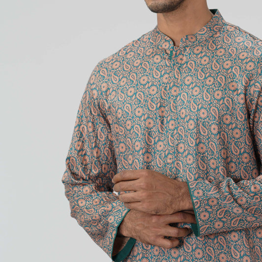 Mens Teal Blue Karchupi Panjabi