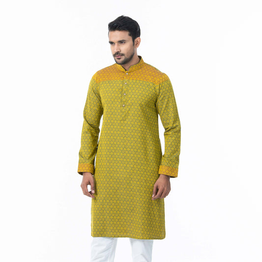 Mens Yellow-Blue Printed Panjabi