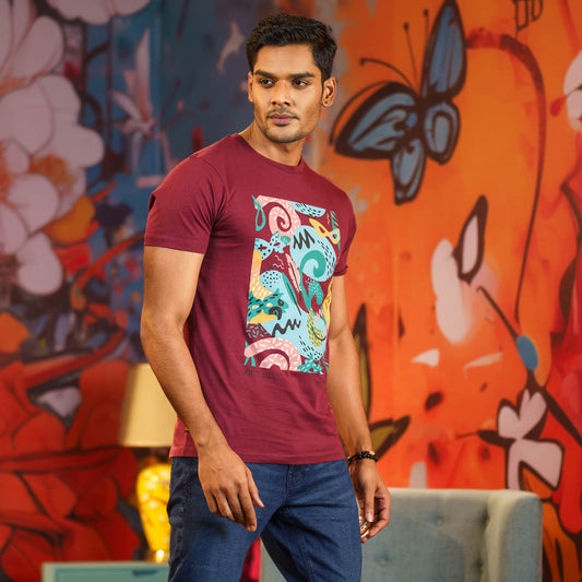 Mens Maroon Print T-Shirt