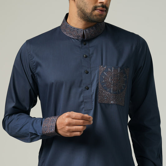 Mens Navy Embroidery Panjabi