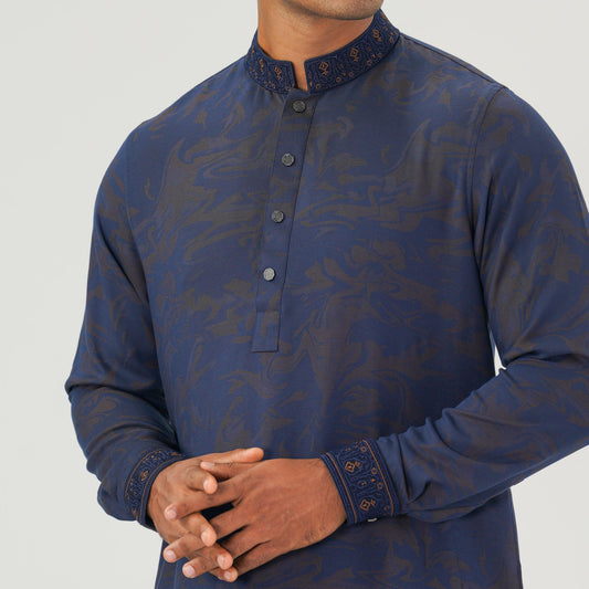 Mens Navy Jacquard Panjabi