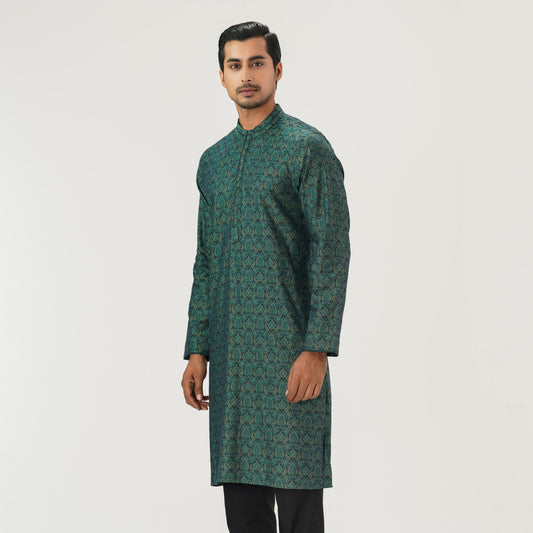 Mens Green Jacquard Panjabi