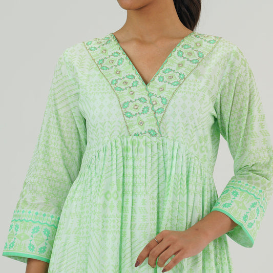 Womens Green Embellished Kurti