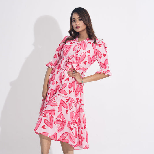 Womens Pink AOP Flared Dress