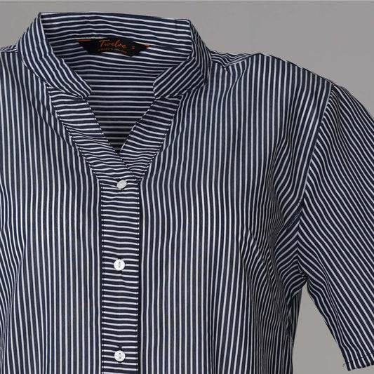 Womens Dark Blue & White Strip Shirt Dress