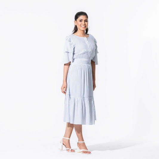 Womens Blue Stripe Long Dress