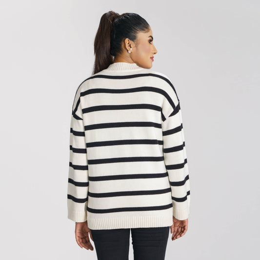 Womens White & Black Pullover
