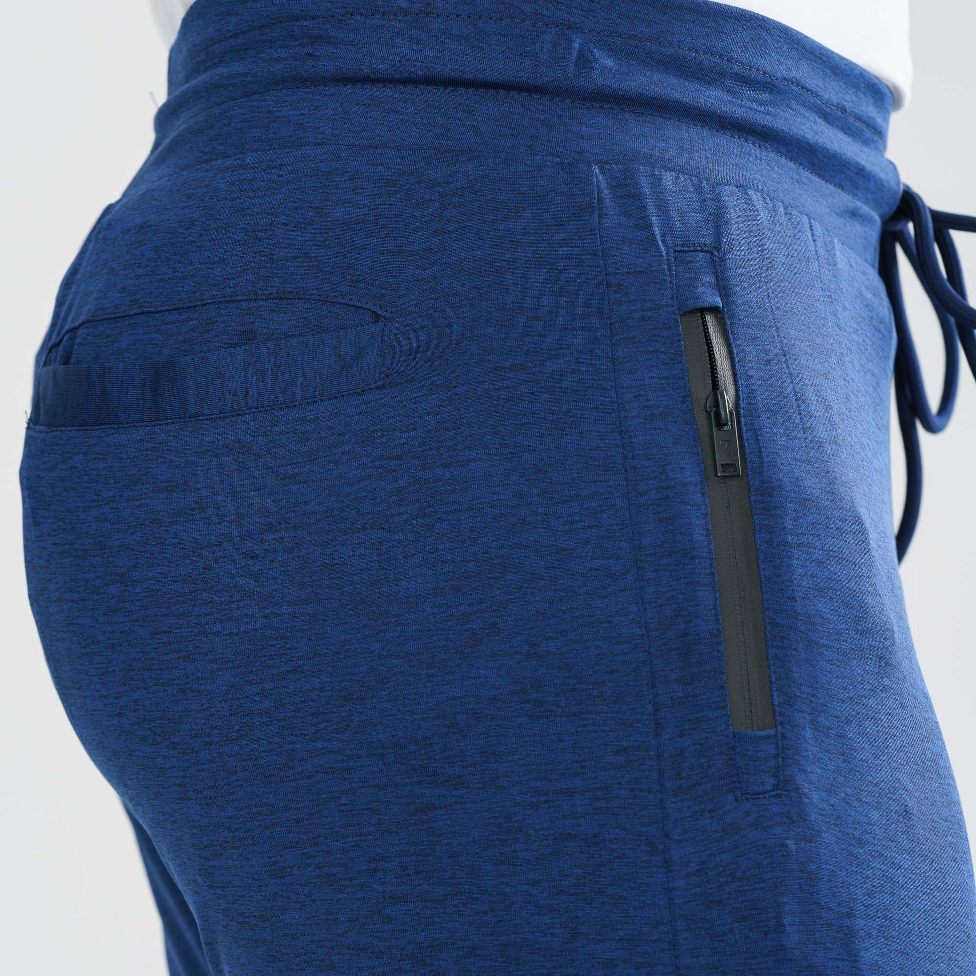 Stay comfortable and stylish with these navy melange joggers. Made from soft single jersey fabric, they feature reverse zipper pockets for added convenience and a drawcord with contrast metal ends for a modern touch. Crafted with a blend of 95% polyester and 5% spandex, these joggers provide a perfect fit and effortless mobility for everyday wear.