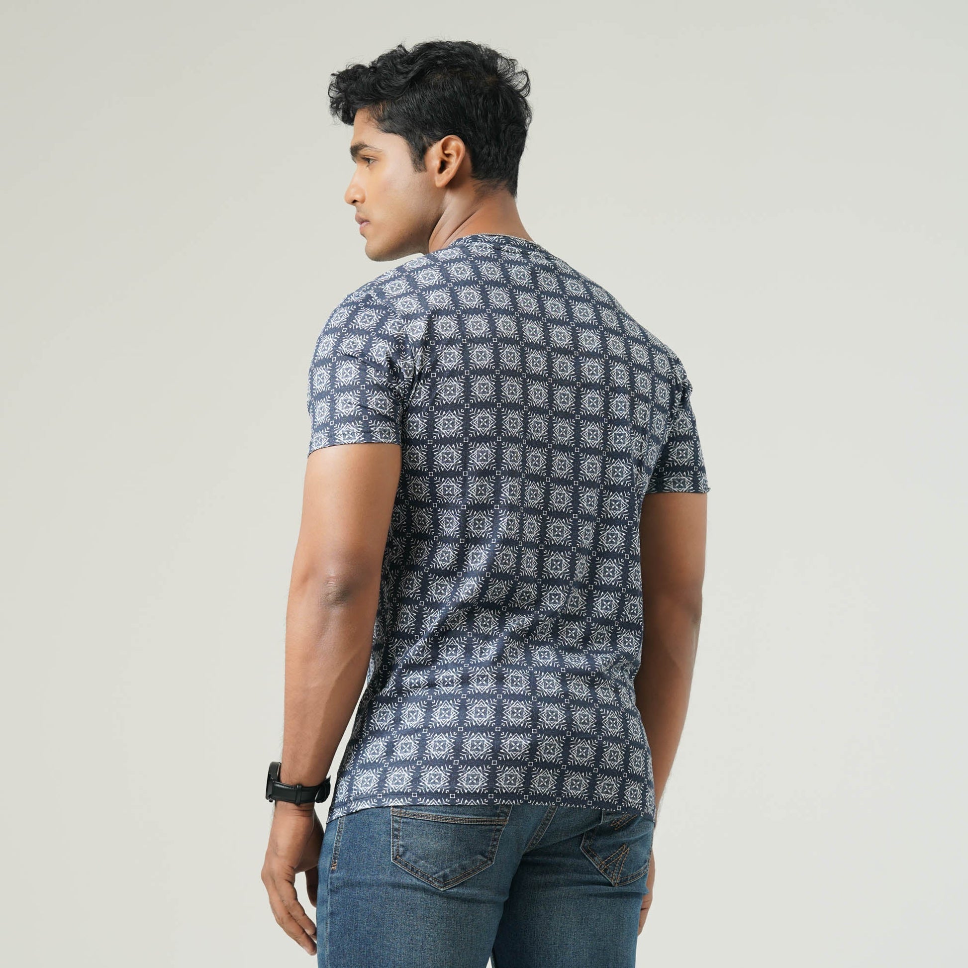 Crafted from 100% combed cotton SJ, 170 GSM for a soft and durable feel. Features an all-over print (AOP) with a bold placement print at the front. Comfortable regular fit—perfect for casual wear.