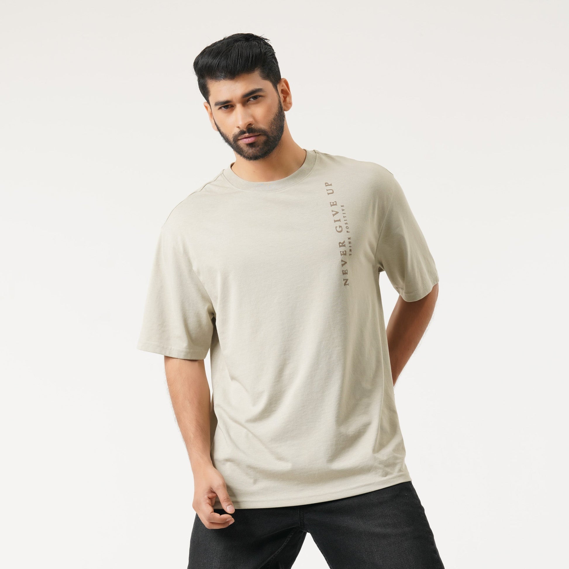 Crafted from a high-quality blended fabric, this oversized t-shirt offers a relaxed fit for ultimate comfort. Featuring a sleek vertical typo print at the front and a subtle logo at the back, it blends minimalism with modern streetwear style. Made from 63% cotton, 21% polyester, and 16% viscose with a 220 GSM fabric weight, it ensures durability and breathability for all-day wear.