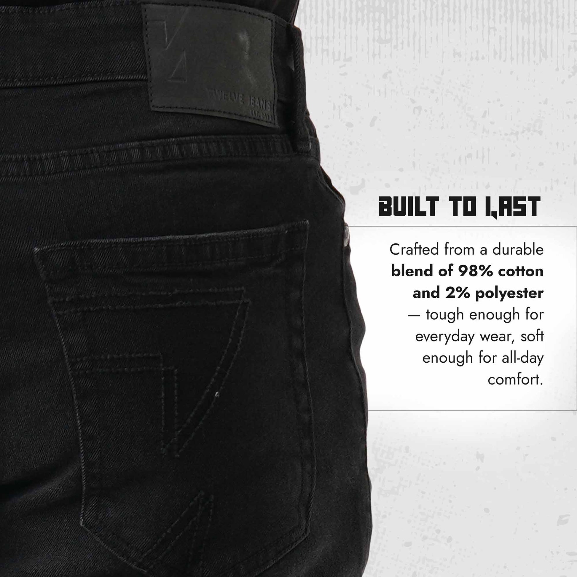 This black denim pant is crafted from a durable blend of 98% cotton and 2% polyester, offering a balanced mix of comfort and strength. The fabric ensures a structured fit while maintaining breathability for all-day wear. Its classic dark tone makes it a versatile choice for both casual and semi-formal looks. A reliable addition to any modern wardrobe.