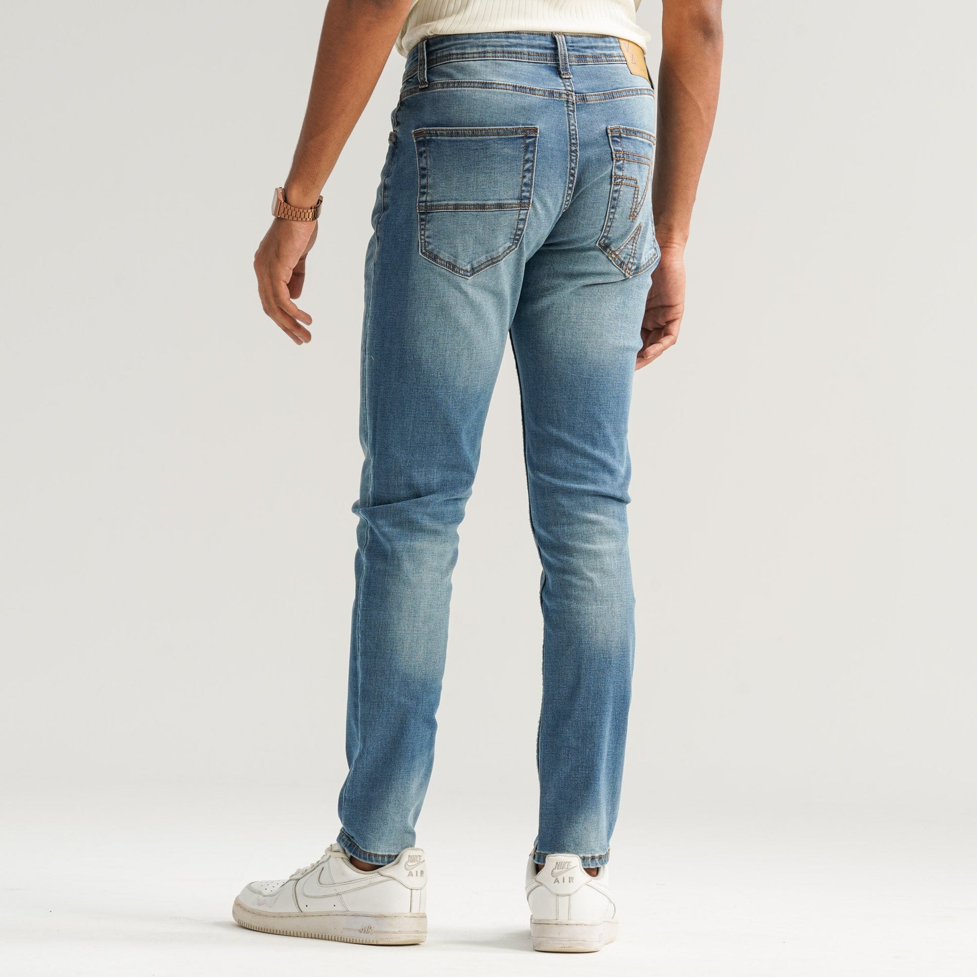Men’s denim pant in blue, crafted from a premium blend of 69% cotton, 27% polyester, 2% viscose, and 2% spandex for comfort and flexibility. Designed with PP wash, whisker effects, and subtle abrasion to create a stylish worn-in look. Finished with embroidery on the back pocket, making it perfect for both everyday wear and casual outings.