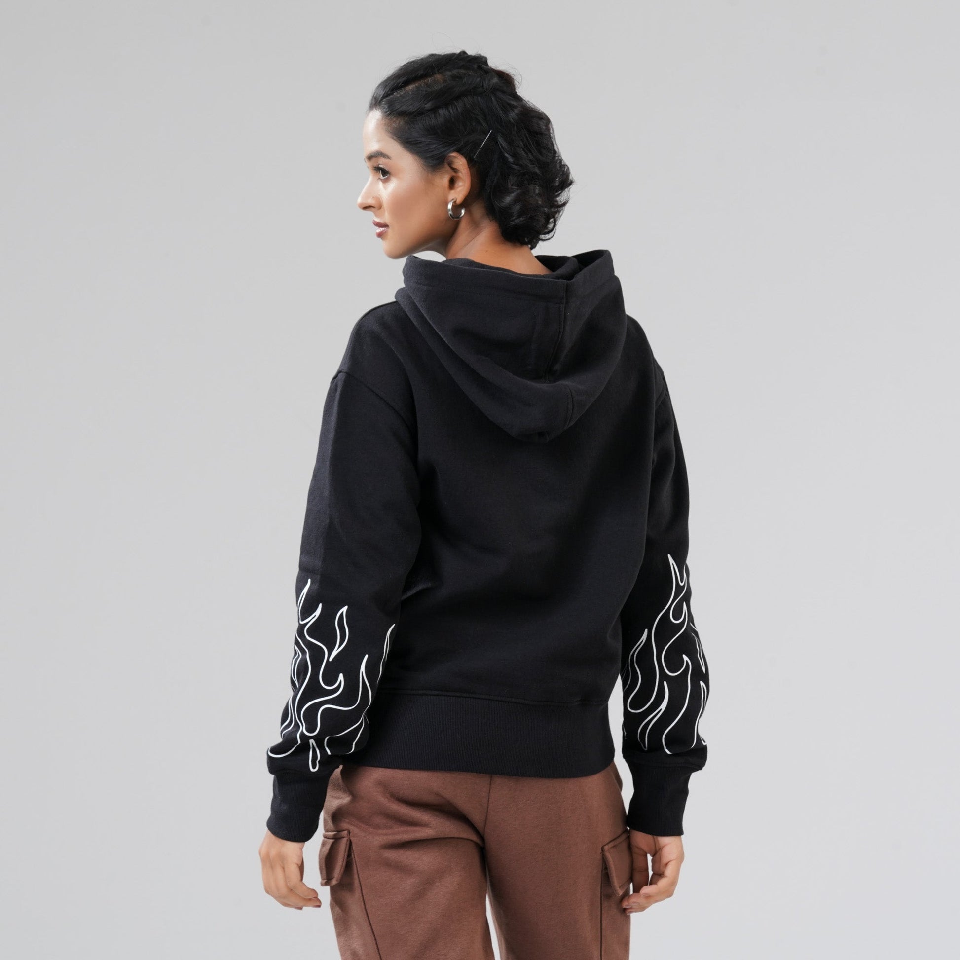 Elevate her casual style with this women’s black hoodie, designed for everyday comfort and ease. Featuring a drawcord hood and crafted from a premium blend of polyester and spandex, it offers a soft, flexible feel for all-day wear. This regular-fit hoodie provides reliable warmth and effortless chic, making it perfect for layering or relaxed casual outings.