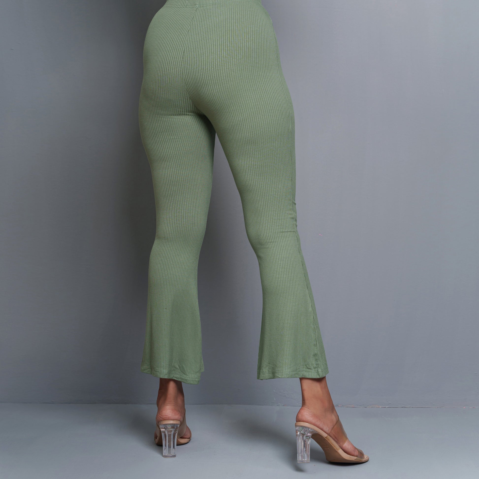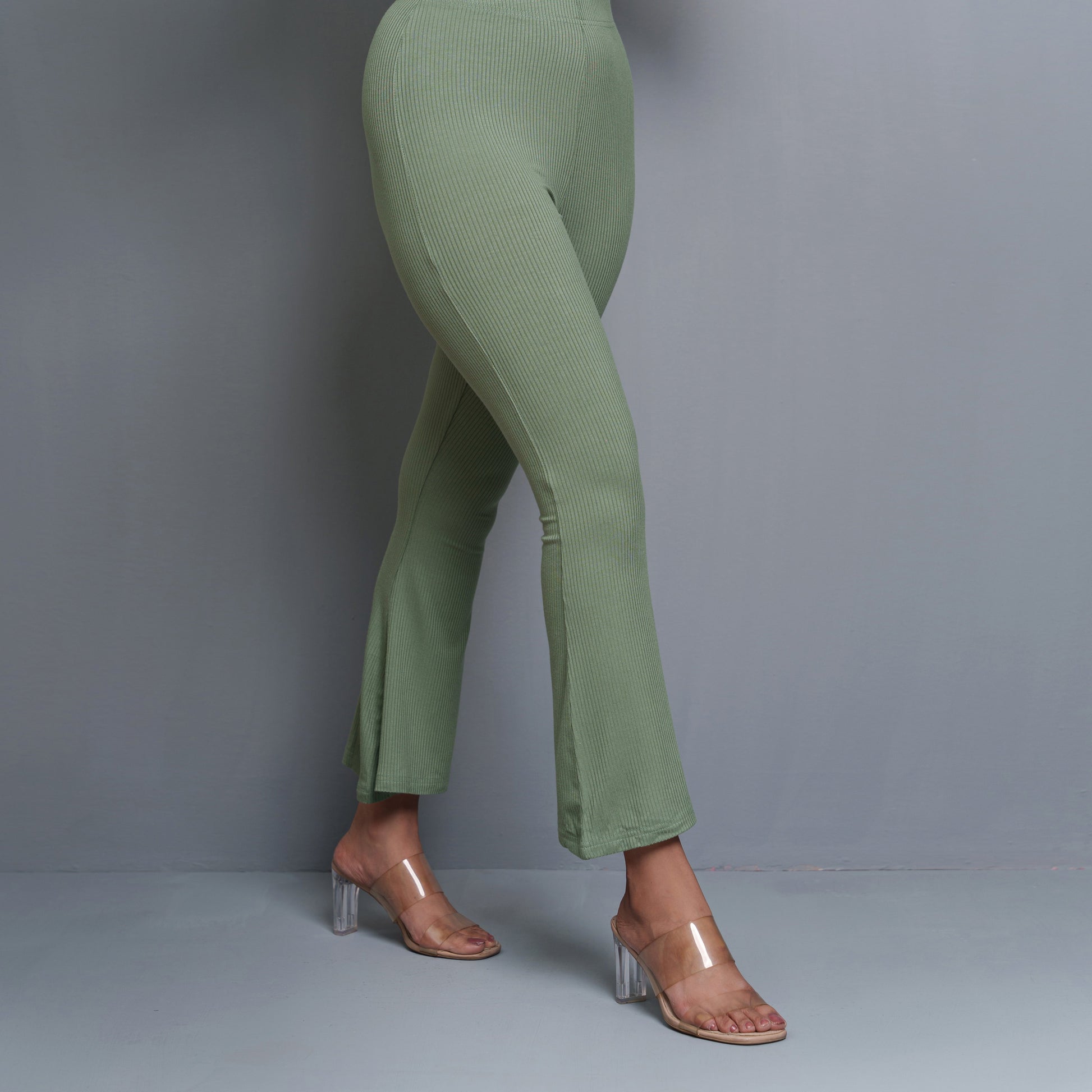 These ladies' light-olive leggings feature a wide leg design and super stretch for a soft, comfortable feel. With a wide leg fit, they offer a blend of style and ease, making them a versatile choice for both casual and active wear.