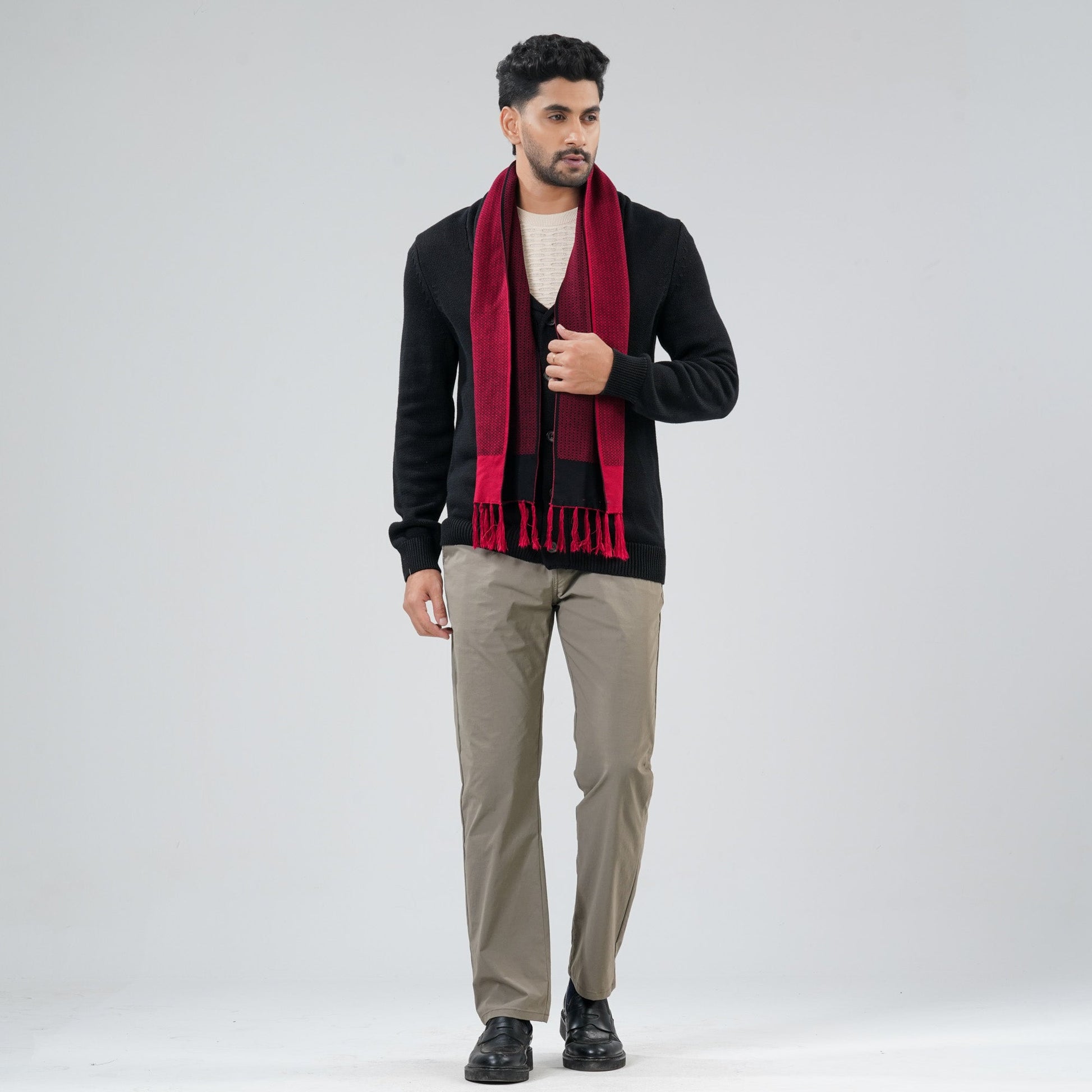 Stay warm in style with this men’s maroon muffler, crafted from a soft blend of 80% viscose and 20% nylon for comfort and durability. Featuring a multicolor ethnic design and playful tassels at both ends, it adds a vibrant touch to any winter outfit. Perfect for casual or festive wear.
